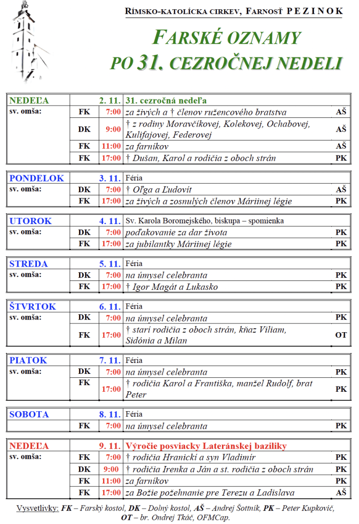 - V stredu po sv. omši vyložíme vo Farskom kostole Eucharistiu na poklonu do piatkovej večernej sv. omše.
