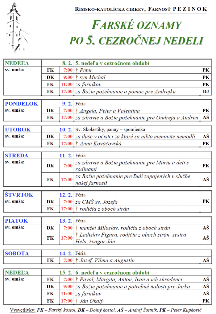 - V sobotu 14.2. o 11:00 pozývame na miništrantské stretko s pánom kaplánom.