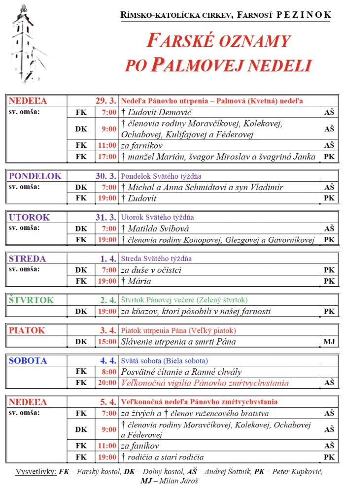- Dnes po sv. omši je veľkonočná ofera. Za vaše milodary nech vás Pán odmení.