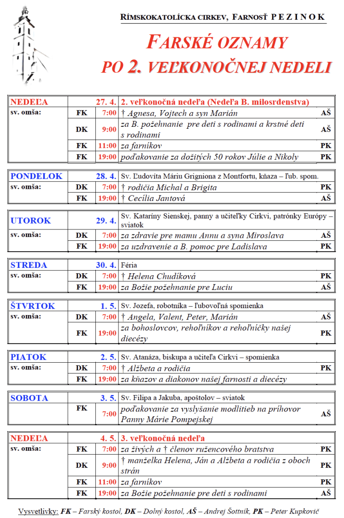 - V stredu po sv. omši vyložíme vo Farskom kostole Eucharistiu na poklonu do piatkovej večernej sv. omše.